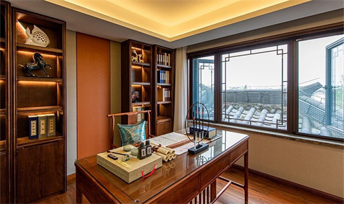 书房清居,长物为邻,陶养修行。文墨丹青,颐养出最纯粹的自己。雅致书桌,方寸之间寄寓了居住者的审美趣味和心灵涵养,品茗、读书、习字,尽享湖畔之致。